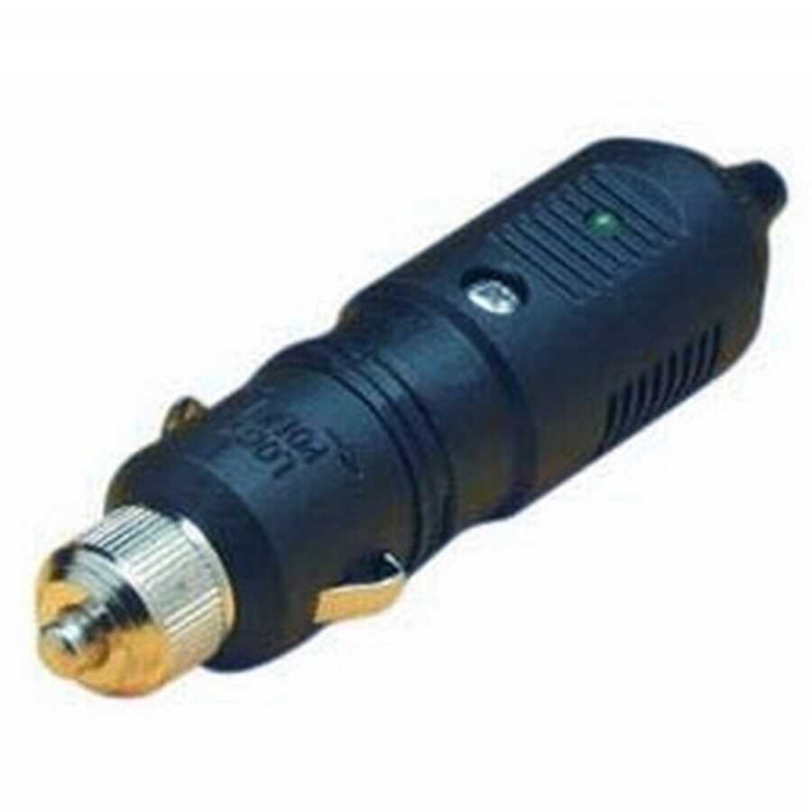 Fiş, çakmak tipi. Siyah polikarbonat. Ledli ve sigortalı.