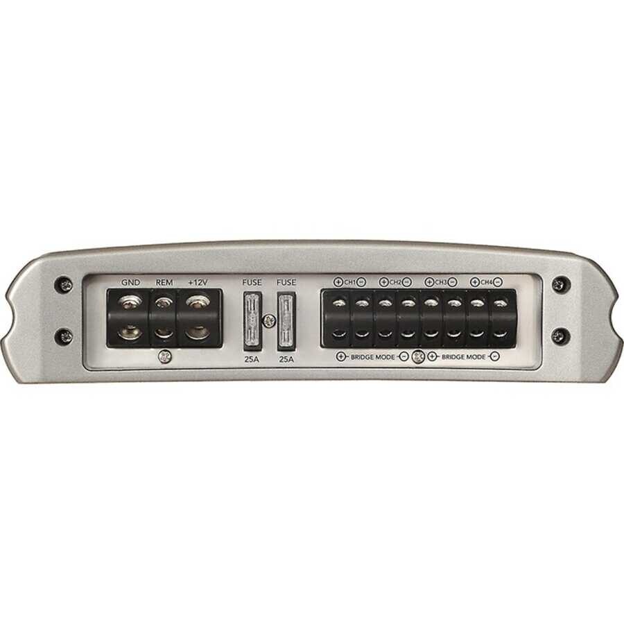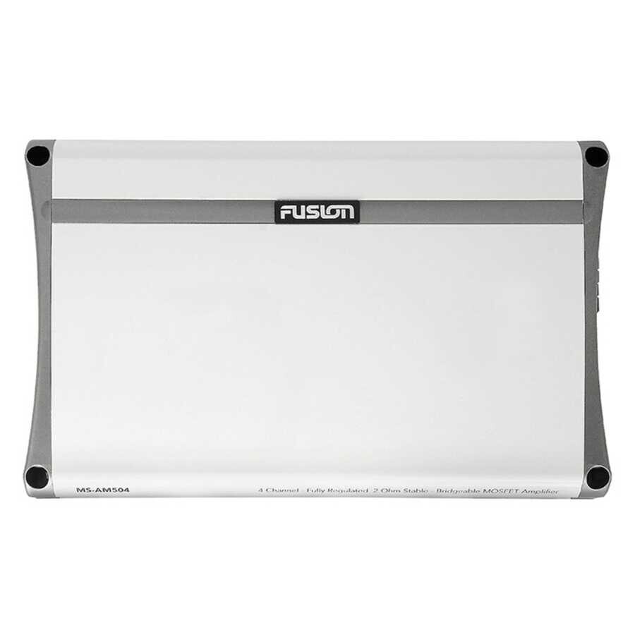 4 kanal ve 500 Watt tepe güç çıkışı ile MS-AM504, bir çift Fusion hoparlöre ve bir 10” subwoofer'a veya en fazla dört çift hoparlöre (her bir kanal 2 Ohm'da paralel 2 hoparlörle) güç sağlar.