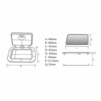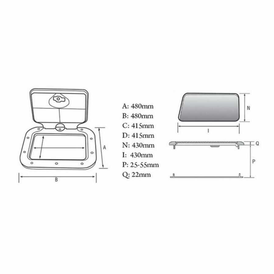 Nouva Rade Plastik Hatch • Dıştan dışa ölçüsü : 480 mm x 480 mm• Montaj Ölçüsü: 430 mm x 430 mm