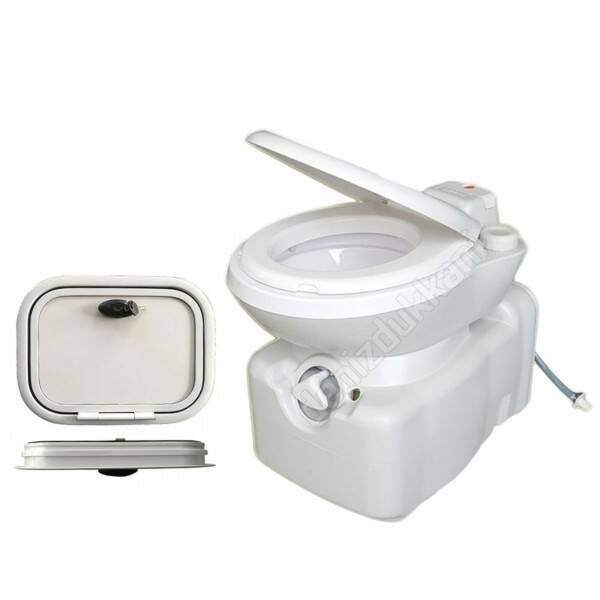 Gelince Haber VerPorvaletti kasetli karavan tuvaleti ve karavan servis kapağından oluşan bir settir.