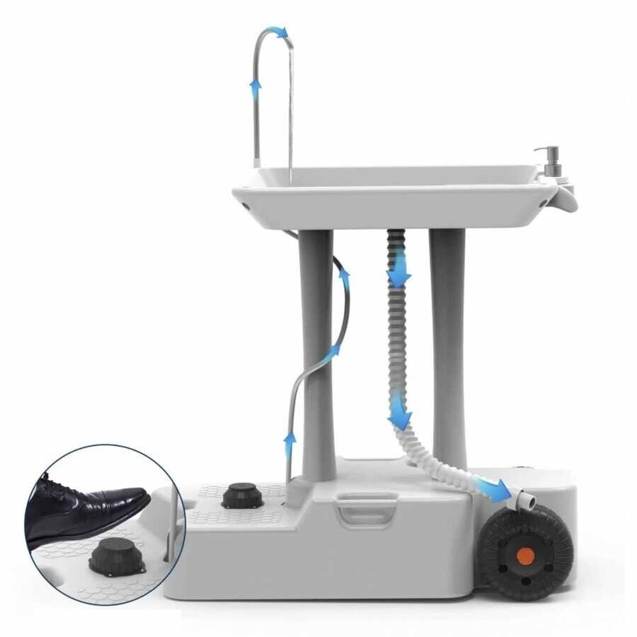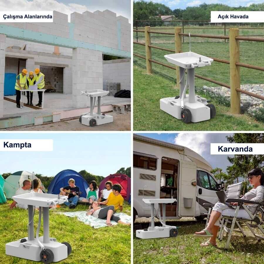 Porvaletti Tekerlekli Portatif Lavabo, 30L Temiz Su Tanklı