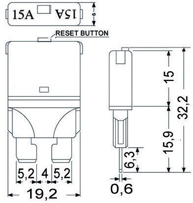 Resetlenebilir ATO/ATC tip sigorta. 12/24V DC. Üzerindeki butona basılarak resetlenir. 5’li paket.