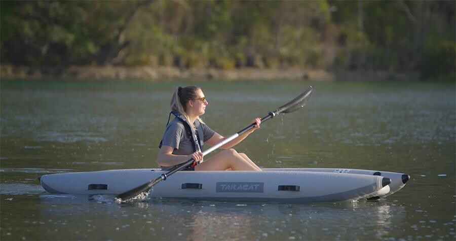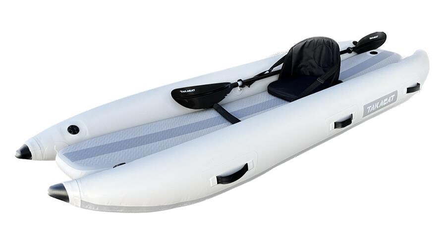 TAKAYAK 300 katamaran tipinde tek kişilik bir kanodur. Eni 42cm olan yekpare sert șișme taban mevcuttur.