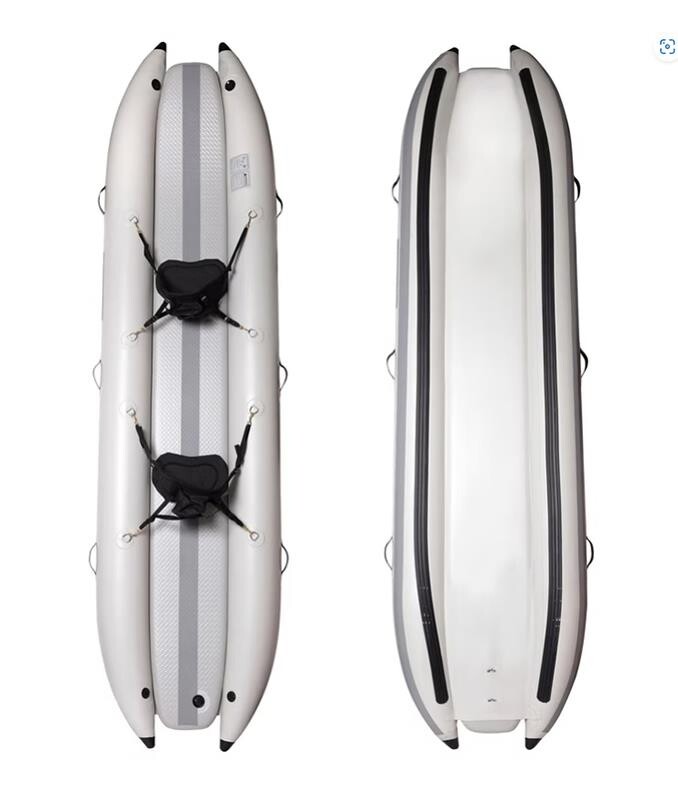 TAKAYAK 395 katamaran tipinde çift kişilik bir kanodur. Eni 42cm olan yekpare sert șișme taban mevcuttur.