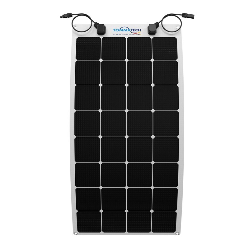 TommaTech®’in yeni nesil esnek panel modeli, yüksek verimlilik değerlerine sahip back contact güneş hücreleri ile tasarlanmıştır. Bu sayede birim alanda yüksek güç kapasitesine sahip esnek panel serisi aynı zamanda kendi ürün sınıfında yüksek şarj kapasitesi özelliği ile de öne çıkmaktadır. TommaTech®’in birinci sınıf hafif polimer malzemeler kullanılarak üretilen esnek panelleri, kolay taşıma, kolay kurulum ve 30° dereceye kadar panel esnekliği sağlama özelliklerine sahiptir. Panellerde bulunan paslanmaz çelik pullar kurulum açısından esneklik ve kolaylık getirmektedir. Bu sayede ürünün çok geniş bir yelpazede kullanımı mümkün hale gelmektedir. 110 Wp ve 170 Wp güç seçeneklerinde sunulan TommaTech® esnek (flexible) panel serisi ihtiyaca göre farklı güç seçeneklerinde de tasarlanabilmektedir. Esnek panellerde tercih edilen IBC Güneş hücreleri bakır tabana inşa edilen bir hücre tipidir. Bu sayede TommaTech® Flexi Paneller geleneksel güneş panellerine nazaran kırılma ve korozyon nedeniyle oluşan güç kayıplarına karşı daha dayanıklıdır. Ayrıca TommaTech® Flexi Paneller büküldüğünde veya nemli bir ortamda bırakıldığında yine daha avantajlı bir konumdadır. Bu sayede TommaTech® Esnek Paneller yüksek güç çıkışı ve hücre sağlamlığıyla birlikte müşterilerin en önemli enerji çözümlerinden biridir.