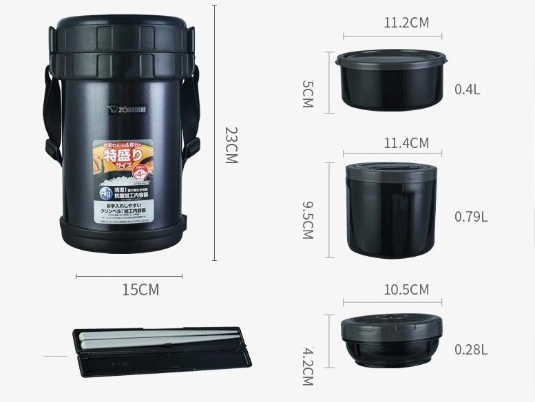 Vakumlu Yemek Termosu, mikrodalgaya elverişli üç iç kase, yemek çubukları ve yemek çubukları tutucusu içerir. Dış kap, dayanıklı paslanmaz çelik konstrüksiyona ve mükemmel ısı tutma özelliğine sahip vakum yalıtım özelliğine sahiptir.